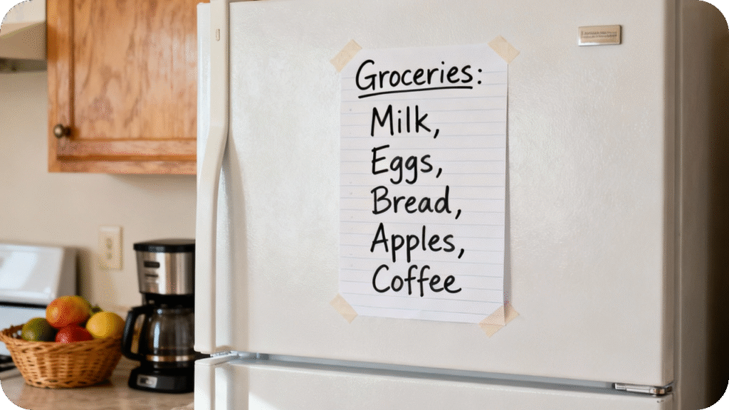 Create shared shopping lists by category — check off items as you shop, synced for everyone.